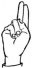 На ћирилици написано МИЊА БАИНОВИЋ састоји се из 12 слова [?]. Исписано ћириличном једноручном азбуком за глувонеме: